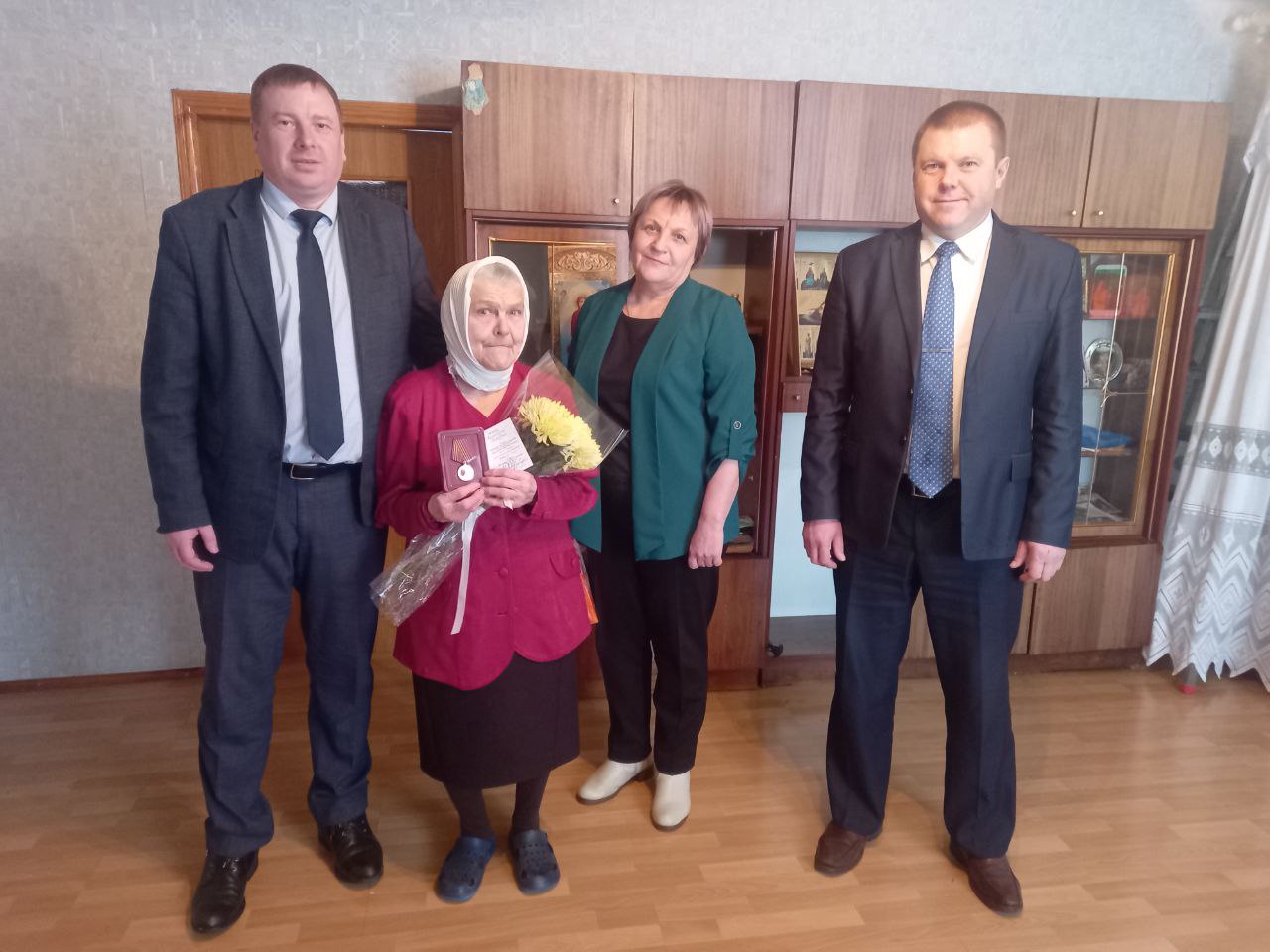 Также юбилейные медали сегодня были вручены Копченовой Юлии Васильевне (п. Яблонка), Антоновой Александре Алексеевне (с.Бахтызино), Клязминой Анне Ивановне(с. Мотызлей), Пикиной Клавдии Дмитриевной (с. Нарышкино), Купцовой Марии Митрофановне(с.Криуша), Аниськиной Анне Ивановне (с. Полховский Майдан), Сычевой Марии Васильевне(д. Варнаево).